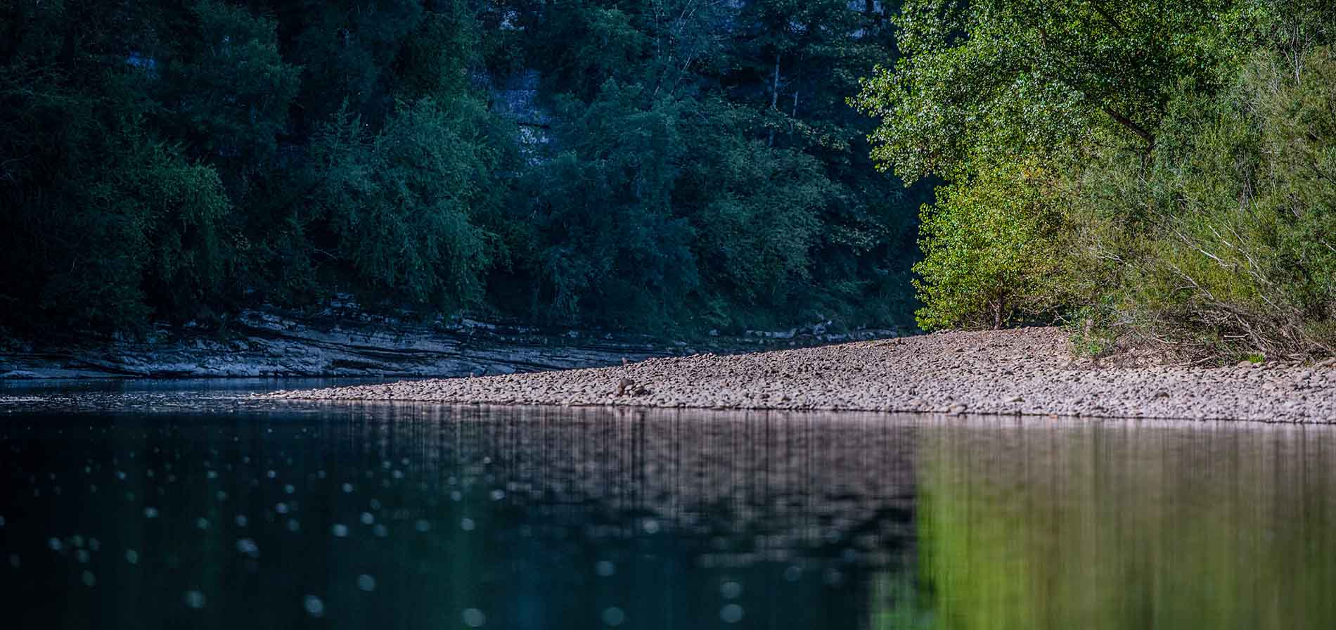 Nous avons choisi d’installer ce campement au bord de la rivière, dans un authentique camping avec un cadre exceptionnel près des falaises.