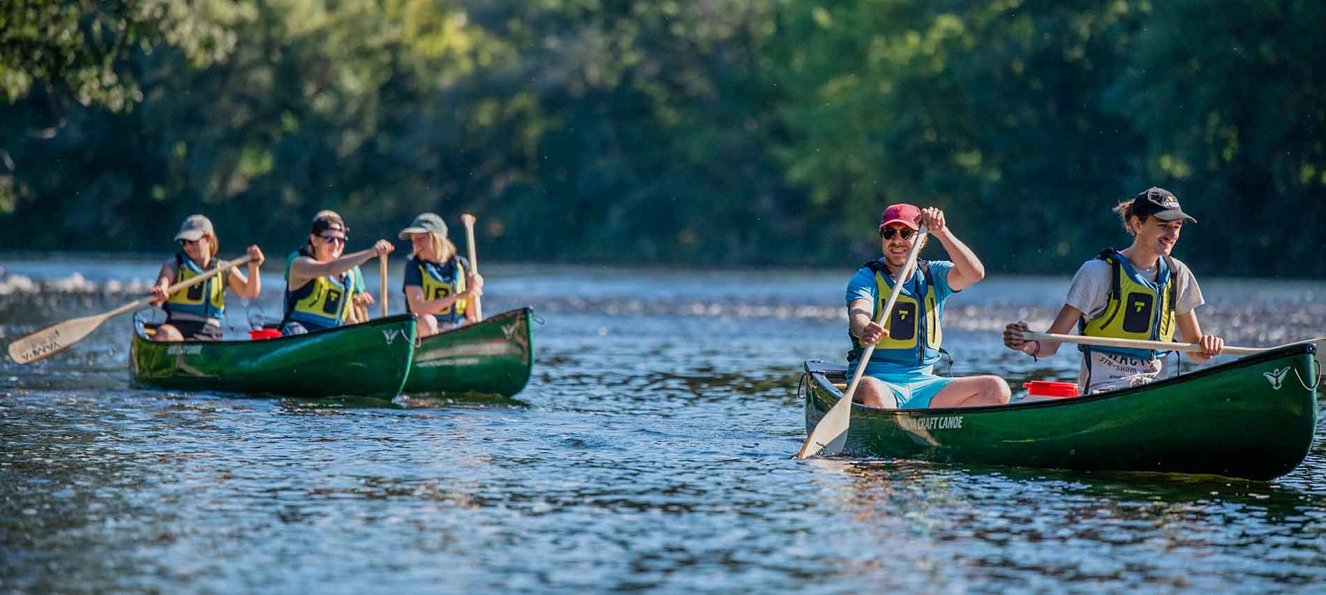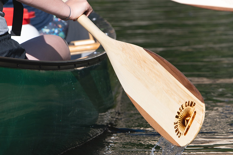 Sur l’eau : Véritable canoë issus des grands lacs canadiens équipés d’authentique pagaies en bois pour une navigation idéale.